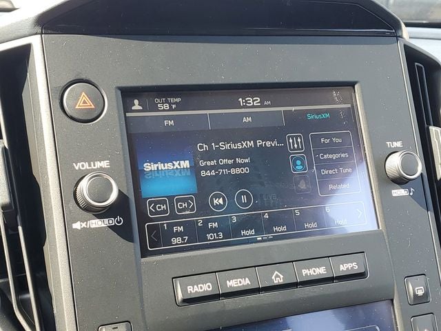 - Radio: Subaru Dual 7.0" Multimedia System -inc: AM/FM stereo, HD Radio, multi-touch gesture high resolution display screen, voice activated controls, Bluetooth® audio streaming and hands-free phone connectivity, Bluetooth® hands-free SMS text messaging connectivity, iPod control capability, smartphone integration: wired Android Auto and Apple CarPlay, USB audio system update, steering wheel audio system and Bluetooth® control switches, 4 speakers (2 front door and 2 rear door), illuminated 3.5mm auxiliary input jack and illuminated front USB A input/charge port