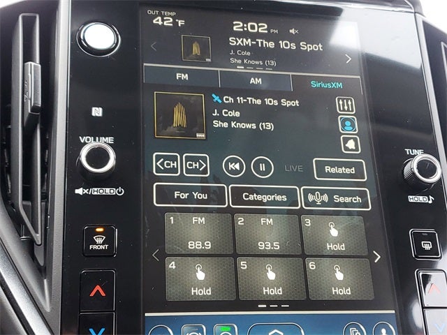 - Radio: Subaru 11.6" Multimedia Plus System -inc: AM/FM stereo, HD Radio, multi-touch gesture high resolution display screen, voice activated controls, Bluetooth® audio streaming and hands-free phone connectivity, Bluetooth® hands-free SMS text messaging connectivity, iPod control capability, smartphone integration: wired and wireless Android Auto w/full screen view and wireless Apple CarPlay w/full screen view, USB and Over The Air (OTA) audio system update, steering wheel audio system and Bluetooth® control switches, 6 speakers (2 dash panel tweeter, 2 front door and 2 rear door), illuminated 3.5mm auxiliary input jack, illuminated front USB A and C input/charge ports, connected services operation indicator, SOS emergency assistance: red SOS button and enhanced roadside assistance: blue i-button