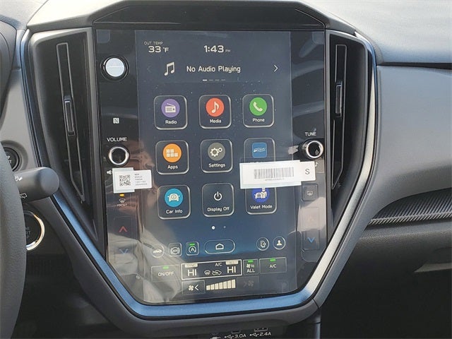 - Radio: Subaru 11.6" Multimedia Plus System -inc: AM/FM stereo, HD Radio, multi-touch gesture high resolution display screen, voice activated controls, Bluetooth® audio streaming and hands-free phone connectivity, Bluetooth® hands-free SMS text messaging connectivity, iPod control capability, smartphone integration: wired and wireless Android Auto w/full screen view and wireless Apple CarPlay w/full screen view, USB and Over The Air (OTA) audio system update, steering wheel audio system and Bluetooth® control switches, 6 speakers (2 dash panel tweeter, 2 front door and 2 rear door), illuminated 3.5mm auxiliary input jack, illuminated front USB A and C input/charge ports, connected services operation indicator, SOS emergency assistance: red SOS button and enhanced roadside assistance: blue i-button