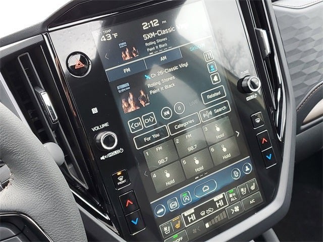 - Radio: Subaru 11.6" Multimedia Navigation System -inc: valet mode, integrated center information display, AM/FM stereo HD Radio, multi-touch gesture high resolution display screen, voice activated controls, voice activated navigation, Bluetooth® audio streaming and hands-free phone connectivity w/SMS text messaging (refer to Subaru.com for cellphone compatibility), TomTom navigation software w/what3words, iPod control capability, smartphone integration: Android Auto and Apple CarPlay w/full screen view and wireless connection, SiriusXM satellite radio w/360L (free 4-month trial subscription included), USB and Over The Air (OTA) audio system update, USB and Map Over The Air (MOTA) TomTom navigation system update (3 years free map updates), steering wheel controls, harman/Kardon speaker system w/11 speakers and 576 watt equivalent maximum output amplifier, 3.5mm auxiliary input jack and roof mounted audio, satellite antenna and SiriusXM Travel Link (4 months free trial included/subscription required after)