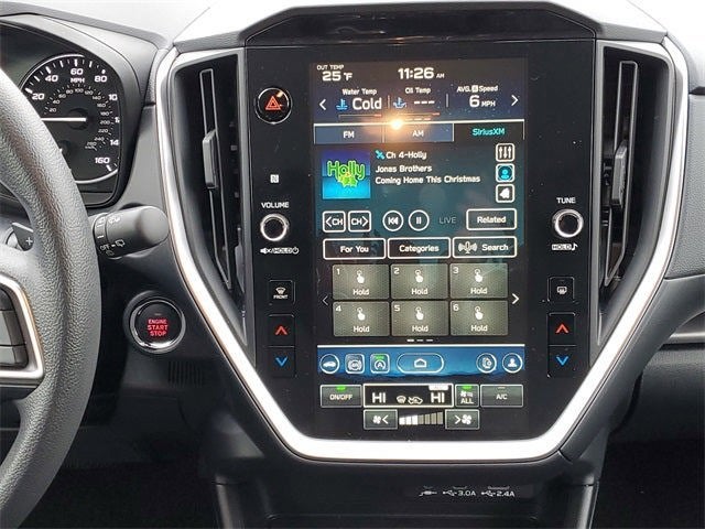 - Radio: Subaru 11.6" Multimedia Plus System -inc: valet mode, AM/FM stereo, HD Radio, multi-touch gesture high resolution display screen, voice activated controls, Bluetooth® audio streaming and hands-free phone connectivity, Bluetooth® hands-free SMS text messaging connectivity, iPod control capability, smartphone integration: wired and wireless Android Auto w/full screen view, wireless Apple CarPlay w/full screen view and wireless connection, USB and Over The Air (OTA) audio system update, audio system and Bluetooth® steering wheel control switches, 6 speakers (2 dash panel tweeter, 2 front door, 2 rear door), illuminated 3.5mm auxiliary input jack, illuminated USB A and C input charge ports, roof mounted satellite and connected services, roof mounted black antenna, connected services operation indicator, SOS emergency assistance (red button) and ehanced roadside assistance (blue i-button)