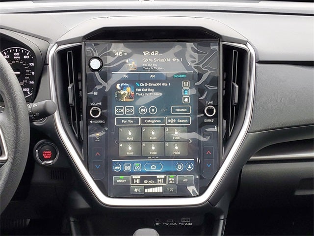 - Radio: Subaru 11.6" Multimedia Plus System -inc: valet mode, AM/FM stereo, HD Radio, multi-touch gesture high resolution display screen, voice activated controls, Bluetooth® audio streaming and hands-free phone connectivity, Bluetooth® hands-free SMS text messaging connectivity, iPod control capability, smartphone integration: wired and wireless Android Auto w/full screen view, wireless Apple CarPlay w/full screen view and wireless connection, USB and Over The Air (OTA) audio system update, audio system and Bluetooth® steering wheel control switches, 6 speakers (2 dash panel tweeter, 2 front door, 2 rear door), illuminated 3.5mm auxiliary input jack, illuminated USB A and C input charge ports, roof mounted satellite and connected services, roof mounted black antenna, connected services operation indicator, SOS emergency assistance (red button) and ehanced roadside assistance (blue i-button)