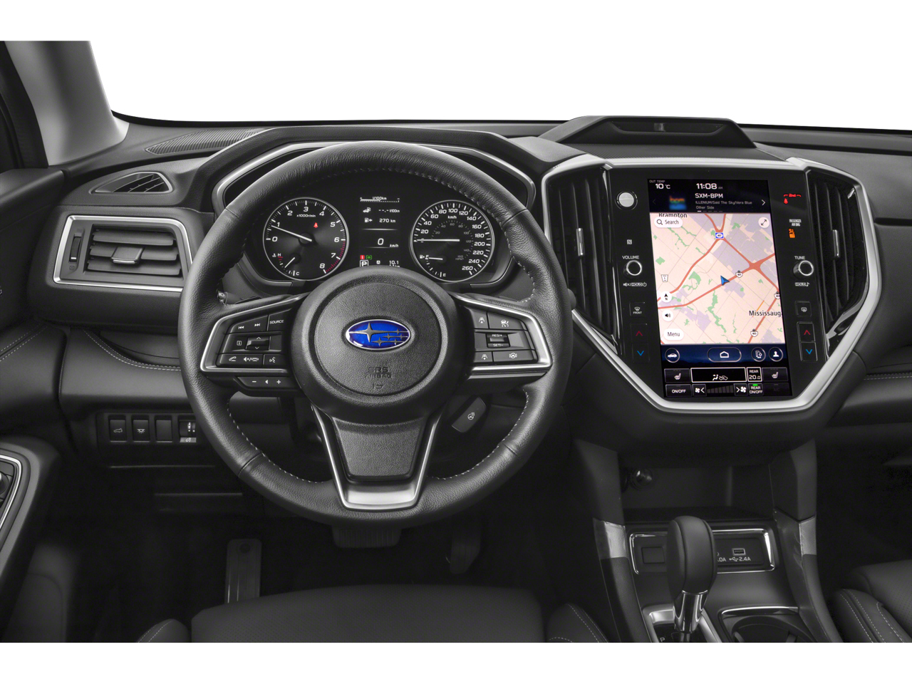 - Radio: Subaru STARLINK 11.6" Multimedia Plus System -inc: AM/FM stereo HD Radio, multi-touch gesture high resolution display screen, voice activated controls, Bluetooth® audio streaming and hands-free phone connectivity w/SMS text messaging connectivity (refer to subaru.com for cell phone compatibility), Near Field Communication (NFC), iPod control capability, SiriusXM All Access radio (4 months free trial/subscription required after), SiriusXM Travel Link (4 months free trial/subscription required after), smartphone integration for Android Auto and Apple CarPlay w/full screen view and wireless connection and STARLINK cloud applications, USB and Over The Air (OTA) audio system update, steering wheel controls for audio and Bluetooth®, 6 speakers, 3.5mm illuminated auxiliary input jack, and illuminated USB A and C input/charge ports